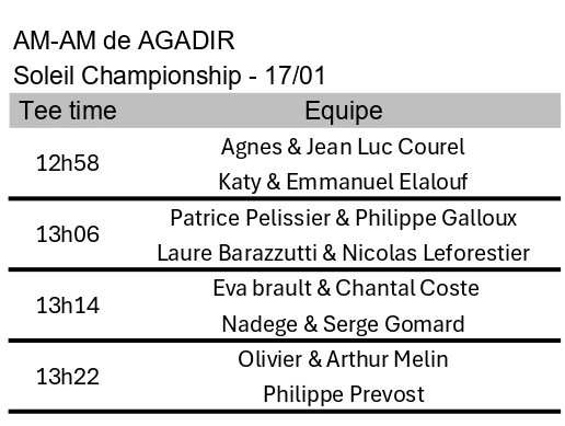 17 JANVIER – Golf Soleil Championship