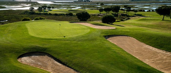 Situé dans la province de Huelva, à l’ouest de l’Andalousie Golf El Rompido se fond dans le site naturel des zones humides de la rivière Piedras. Golf el rompido est le seul parcours de golf dans la région avec 36 trous (Nord et Sud du parcours). Ses deux parcours de 18 trous, entourés de pins et orangeraies, traversent les zones humides et s’ouvrent sur l’océan Atlantique avec des vues spectaculaires, donnant à ceux qui y jouent une expérience unique. La force de la nature est évidente à chaque pas, transformant le sport du golf en un plaisir pour les sens.